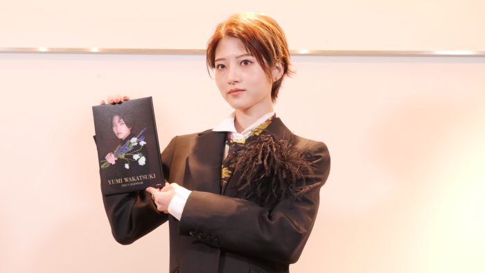 カレンダー撮影で使用したメンズライクなブラックフォーマルの衣装で登場した若月。撮影用衣装のイメージ画像を全部共有し、花や椅子などの小道具も細かく指定したとのこと。出来ばえは「シンプルに100点」と自己評価し、「今の自分が出せる最大限のものが出せたかなと思います」と胸を張りました。また、カレンダーを作成している際に「これ(パネル展やポップアップストア)が実現できるのも、応援してくださるファンの皆さんがいらっしゃるからこそだなと思っていました」と感謝し、可愛いイメージからボーイッシュな感じまで、「無理しすぎず、包み隠さず、ありのままの自分が好きな自分を見てもらいたいなと。皆さんにも“両A面”を楽しんでいただけたら嬉しいです」とアピールしました。