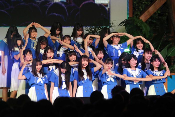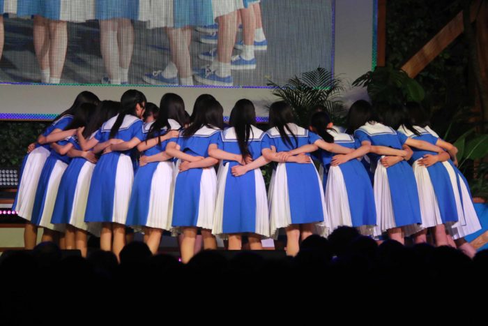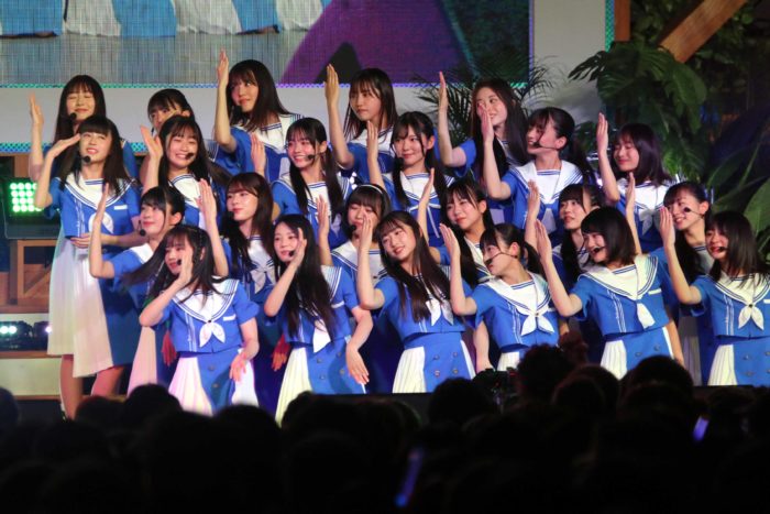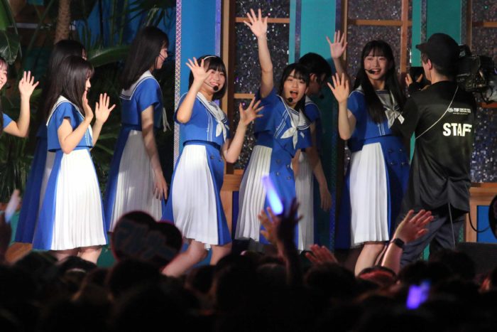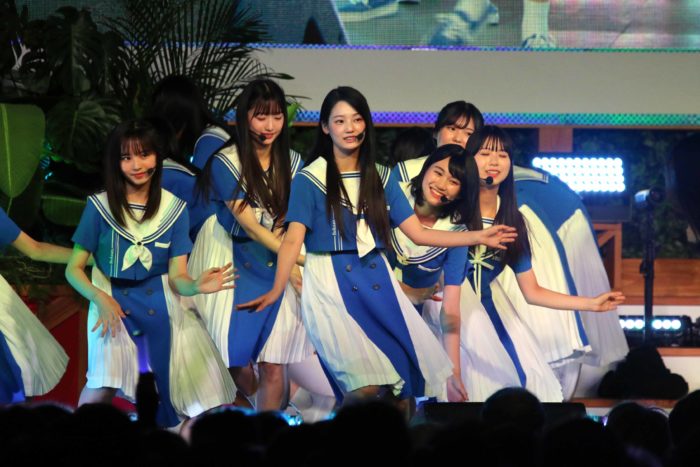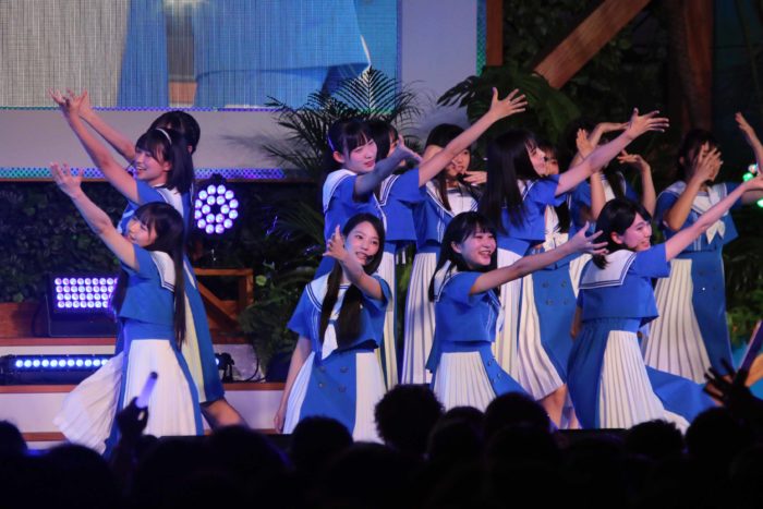 パフォーマンス前に、ステージ上で23人が円陣を組んで気合いを入れ、初々しさと意気込みを感じさせた。