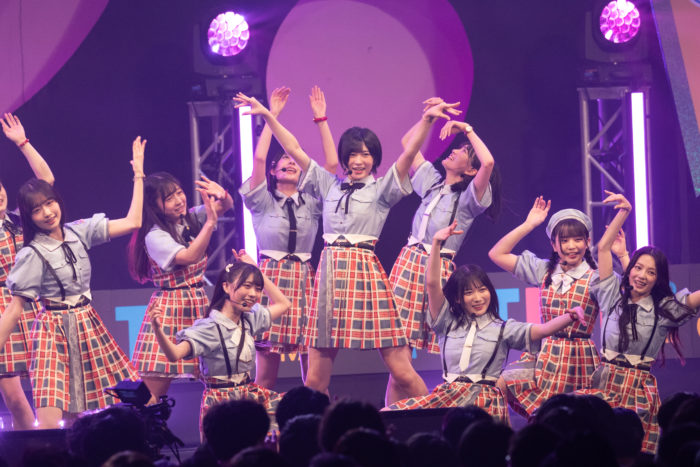 オープニングから勢い全開。スピード感のあるビートに乗せた恋心を、フレッシュなダンスで表現。青空組の持ち味である”透明感×疾走感”が炸裂し、観客のサイリウムも高速で揺れる。
