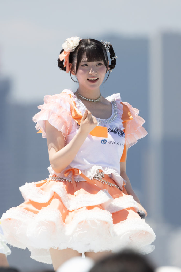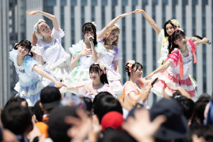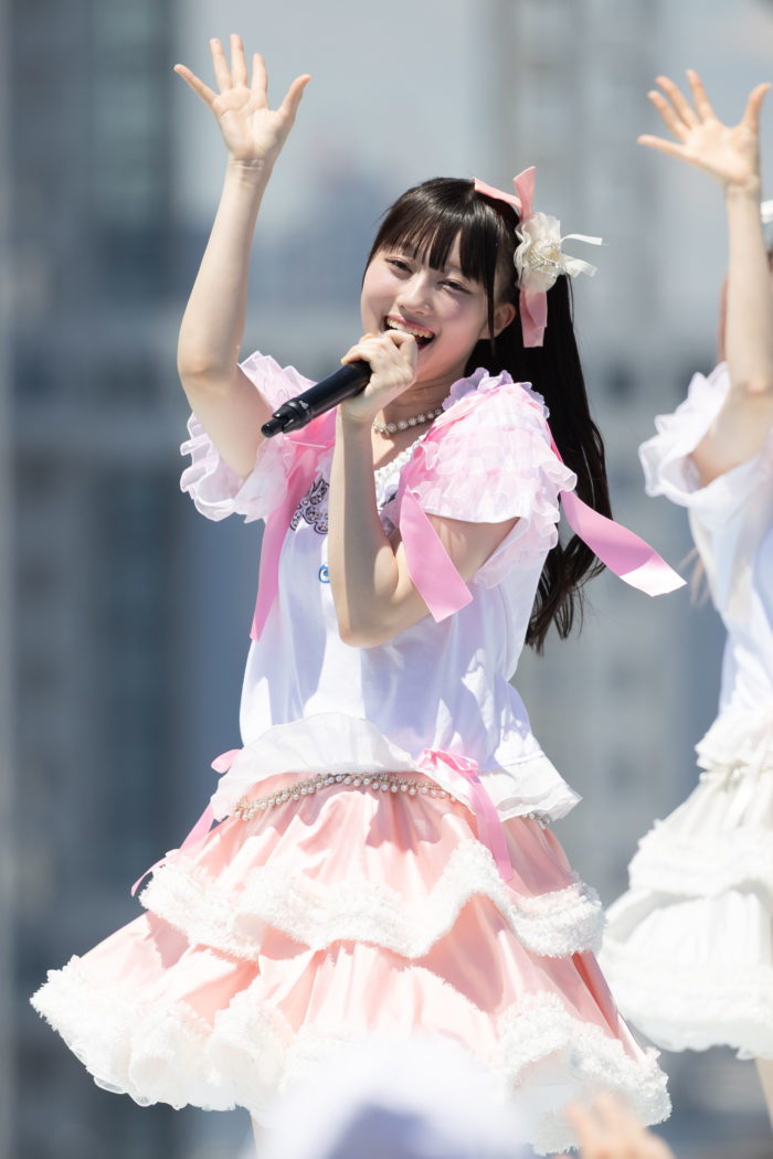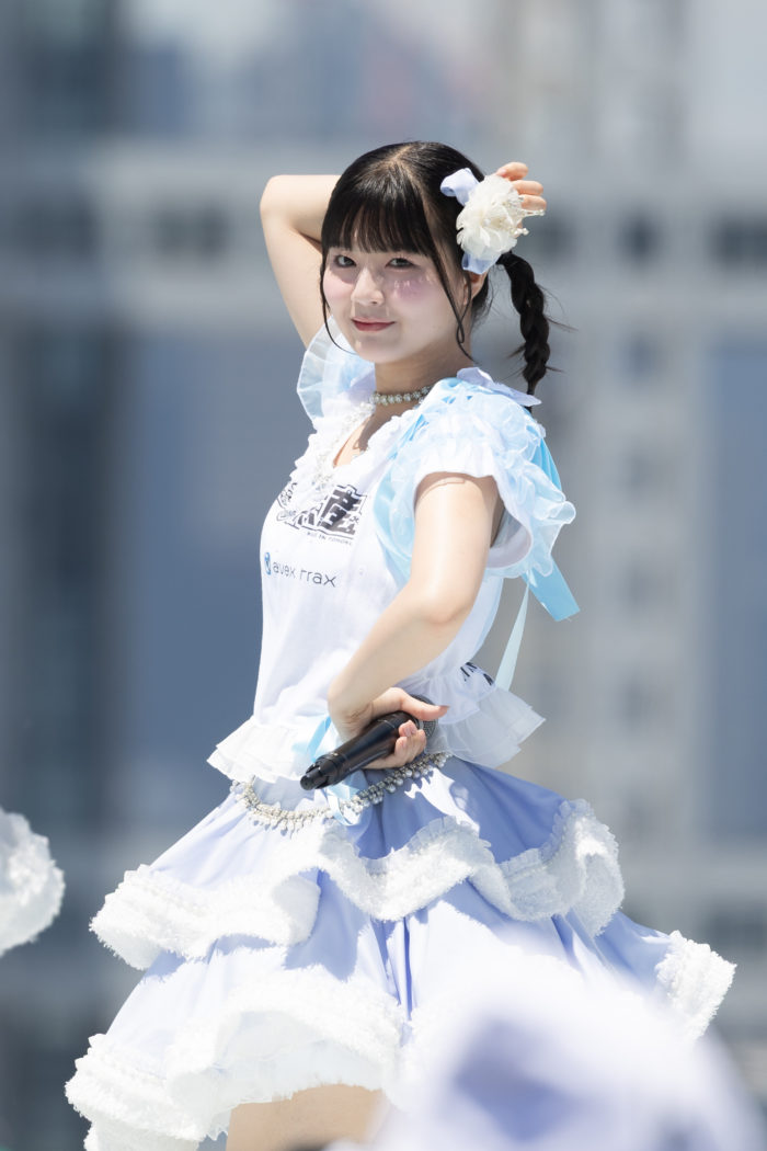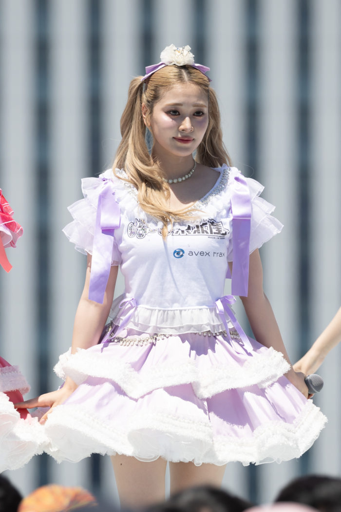 1曲目「沼れ!マイラバー」からエンジン全開!中毒性のあるメロディと恋心を叫ぶ歌詞が夏空に響き渡った。中毒性の高いフレーズとキレのあるダンスが、彼女たちの実力をあらためて見せつける。