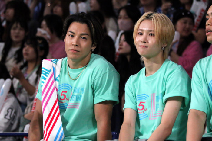 この日RIKUは、グリーンチームの一員としてイベントに参加。隣にはWOLF HOWL HARMONYのHIROTOの姿もあり、ファンに向かってにこやかに笑顔を振りまく場面も。