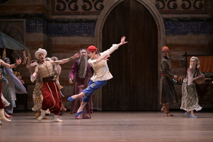 空飛ぶじゅうたんやランプの精の登場など華やかな演出が大きな見どころ。初演以来、子供から大人まで多くのバレエファンに愛されてきたプロダクションです。