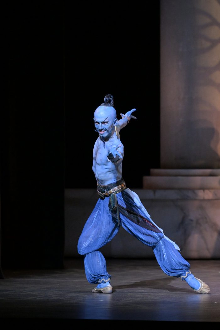 惜しくも今期限りで退団が決まっている福田圭吾は躍動感とエネルギーに満ち溢れ、コミカルな演技で楽しいアラジンを演じた。この上なく神経が行く届いた舞踏スタイルで多様なヴァリエーションをたっぷりと披露した。
