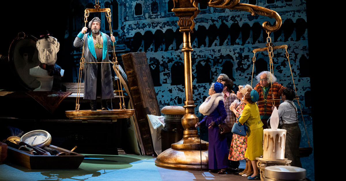 「ジャンニ・スキッキ」の舞台装置はこれまた観客の目を楽しませる大変優れたものだった。斜めに拡大された書斎が舞台となっており、巨大な天秤や時計や手紙などが配置されている。遺産を巡り、欲に取りつかれた小人たちが机の上で大騒ぎしているような様相をコミカルに表現している。粟國 淳演出の舞台は、オペラファンだけではく、ミュージカルファンや子供達にも見てもらいたい舞台となっていた。