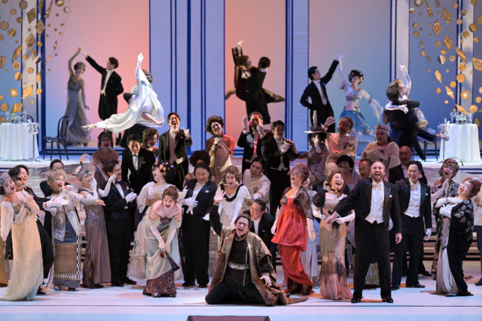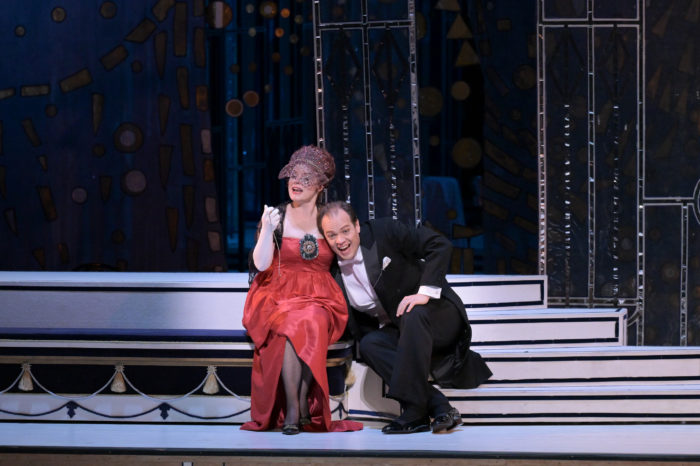 新国立劇場のニューイヤー恒例公演として親しまれてきたヨハン・シュトラウスⅡ世のオペレッタ《こうもり》が、シュトラウス生誕200年の記念年にふさわしく華やかに幕を開けた。2006年初演、今回で8度目の上演となるハインツ・ツェドニク演出は、ウィーン独特の香気と洗練を今なお色あせることなく伝え、年始の客席を幸福感で満たした。