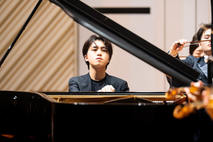 オーケストラの堂々たる導入を受けて登場した牛田のピアノは、第一音から明晰で、音の粒立ちの美しさが際立つ。進行も極めて自然で、転調を重ねるフレーズにおいても音楽の流れが滞ることはない。