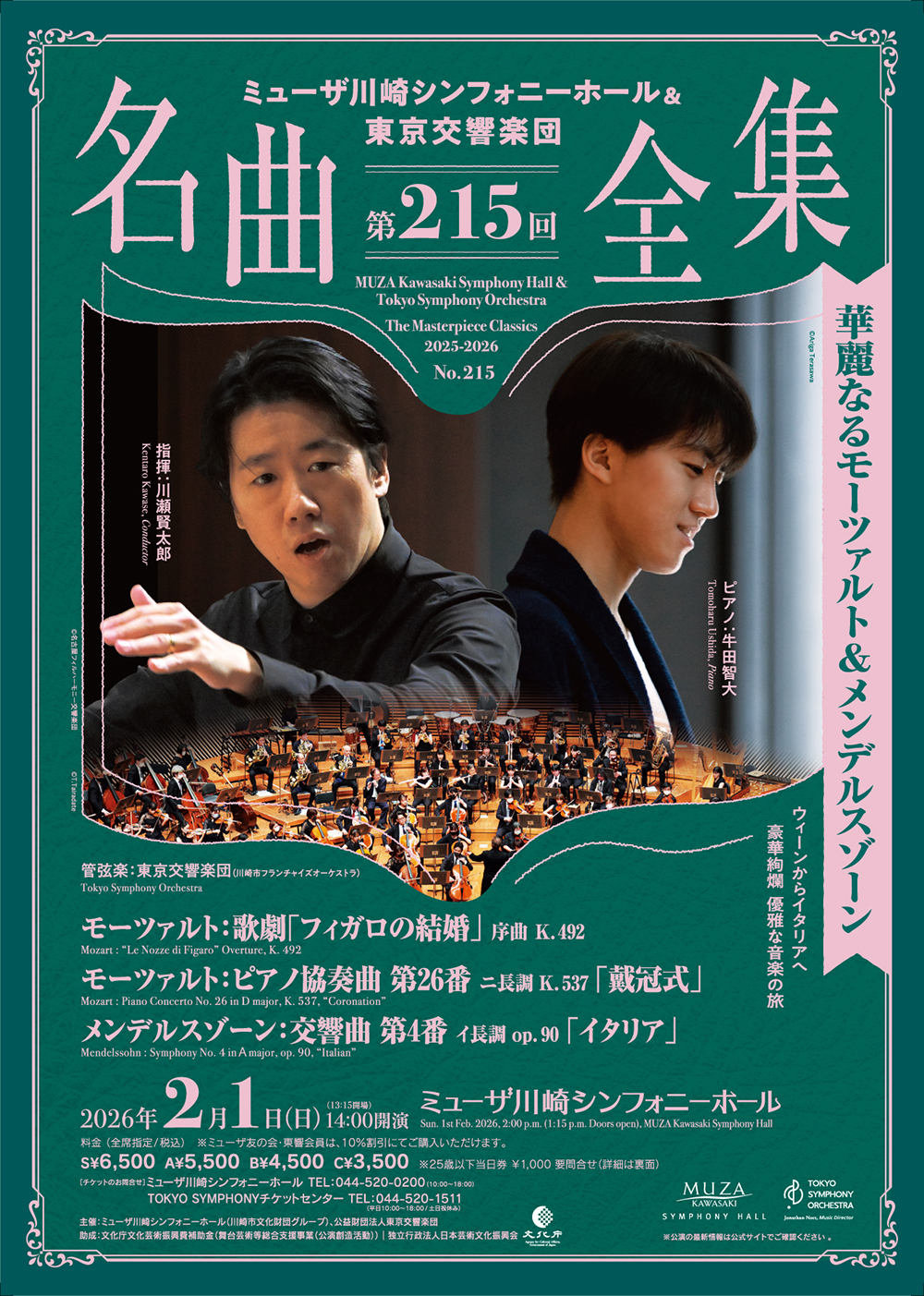 ミューザ川崎シンフォニーホール&東京交響楽団「名曲全集」第215回は完売公演となり、客席には牛田智大の演奏を待ちわびる聴衆の熱気が満ちていた。本公演の中心となったのは、モーツァルトのピアノ協奏曲第26番《戴冠式》。牛田がこの名作にどう向き合うのか、注目が集まった。