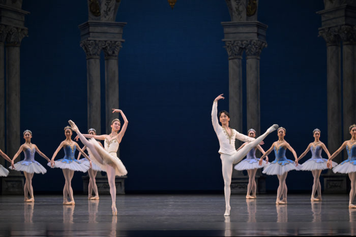 幕が開いた瞬間に漂う高潔な緊張感、そして柴山紗帆と李明賢によるコンビネーションの美しさに、観客の視線は瞬く間に釘付けとなった。李はバランシン作品の中でも最高難度を誇る男性ソロを軽やかに踊り切り、柴山は音の粒を慈しむような正確なポアントワークを披露。その無比のテクニックと凛とした気品は、プリンシパルとしての風格を漂わせていた。