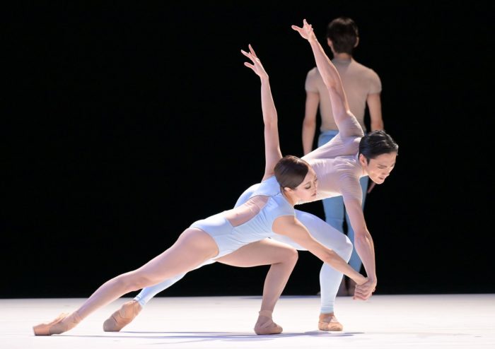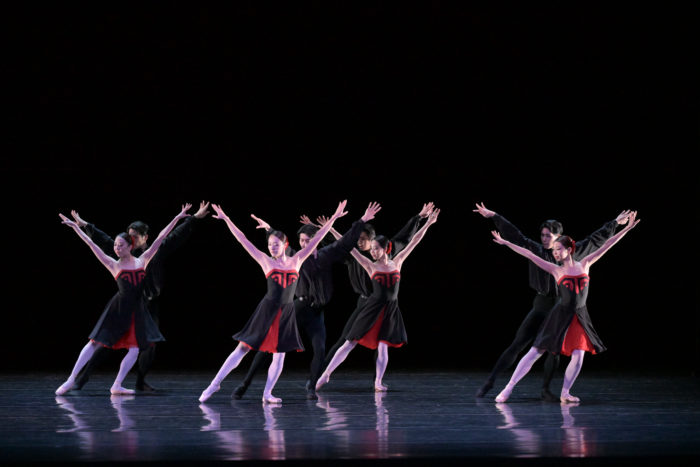 9名のキャストが舞台上で入り乱れ、揃えば華やかに、離れれば自由に、手足をぎりぎりまで伸ばしてスピーディーに踊る姿が圧巻。直塚美穂&渡邉峻郁の第2楽章デュエットは色香に満ち、男子チームがすらりと美しく、女性陣は可憐さと力強さを兼ね備えていた。9名が舞台に並ぶクライマックスは手に汗握る感動をもたらした。