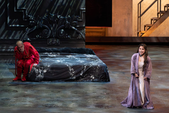 演出はエミリオ・サージ。陰影を湛えた美しい舞台美術は、登場人物の孤独をより際立たせる。奇をてらわず音楽を中心に物語を展開する手法は、「楽譜尊重」の音楽作りと見事な相性を見せた。