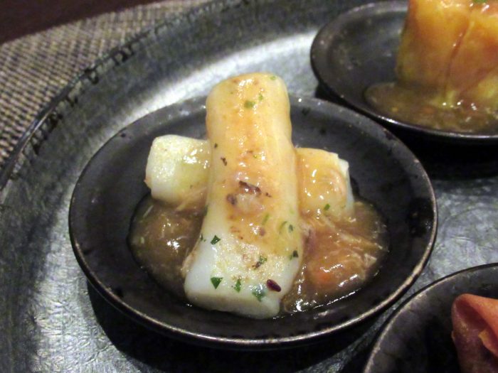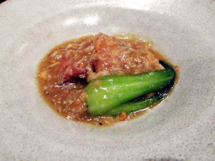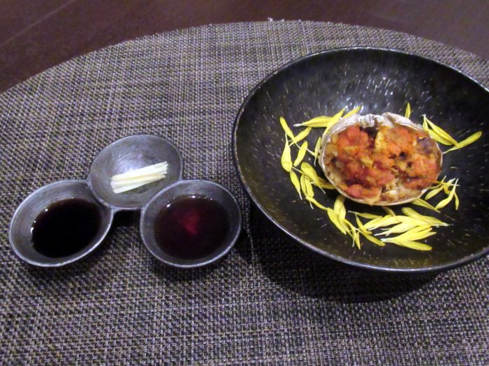 濃厚なのに重さを感じさせず、タルトの香ばしさが上海蟹味噌のコクを心地よい余韻として残す。ひと口ながら、料理長のテクニックが顕著に感じられる仕立て。