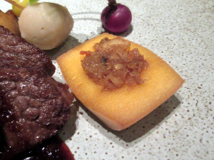 ・信州プレミアム牛サーロイン 上海蟹味噌ミルクパンを添えて