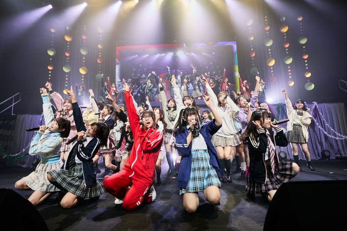 昼公演は<文化祭>をテーマに模擬店やコンテストなど、様々な演出を盛り込んだセットリストを展開。5thシングル「12秒」では、秋吉優花・荒巻美咲・坂本愛玲菜・地頭江音々・豊永阿紀によるバンド演奏も披露しました。