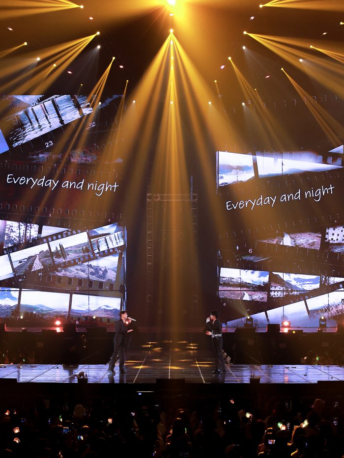 そして2人は「Stand by U」「明日は来るから」「どうして君を好きになってしまったんだろう?」の3曲に続き、「begin」と「PROUD」といった日本語楽曲を連続で歌唱。「PROUD」では、2人の若かりし頃と現在の映像が映し出され、まるで当時の自分たちに語りかけるように歌唱する姿が印象的だった。日本でK-POPブームが起きたきっかけとなり、ずっと業界を牽引してきた2人。