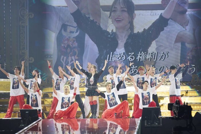 真っ赤なチャイナドレスで披露された「I am…」「Rule」「evolution」でオーディエンスの心を鷲掴みにすると、「BLUE BIRD」「Moments」「Dearest」「SEASONS」などの大ヒット曲を次々に歌唱し、観客を魅了。「第66回 輝く!日本レコード大賞」で特別賞を受賞し、パフォーマンスを披露した「Voyage」のイントロが流れるとひときわ大きな歓声が沸き起こった。