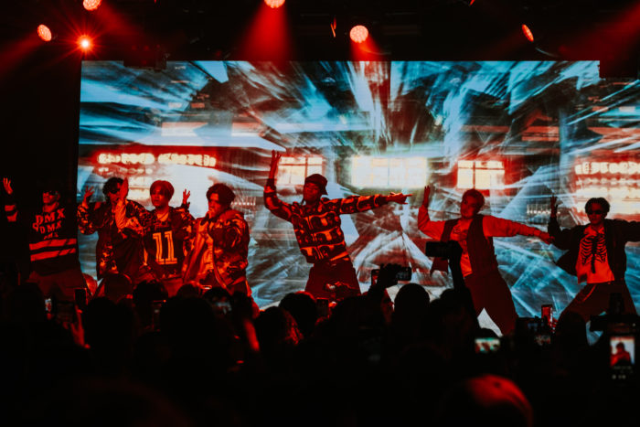 一曲目は、10月26日に日本で放送が開始されたテレビ朝日×東映『仮面の忍者 赤影』のオープニング曲「SWISH DAT」。タイアップドラマの世界観である“和”の要素を取り入れたHIP HOP楽曲で「ennichi ’25 Japanese Music Experience LA」のコンセプトにピッタリな世界観を表現し、会場を一気にPSYCHIC FEVERの世界へと引き込む。メインラッパーのJIMMYは「PCF(PSYCHIC FEVER)!! PCF!!」のコール&レスポンスでオーディエンスを煽り、会場の熱を一気に加速させた。グローバルバイラルヒット曲「Just Like Dat feat. JP THE WAVY」では、本楽曲でコラボしているJP THE WAVYをステージに迎え、会場全体で大合唱に包まれた。