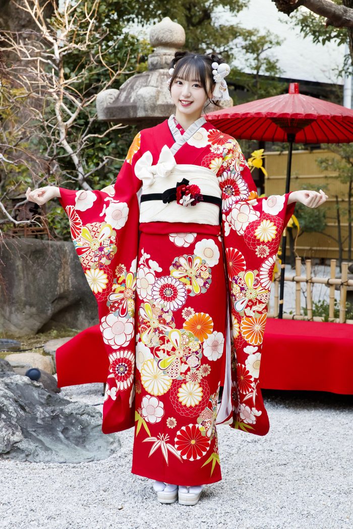 鮮やかな振り袖姿を披露しました。今年成人式を迎えるのは、泉綾乃 (ドラフト 3 期生) 、龍本弥生 8 期生 、田中美空 9 期生 、西田帆花 9 期生 、西島梨央 9 期生 、内田愛彩 10 期研究生) 、村井悠莉 10 期研究生) の 7 人 。