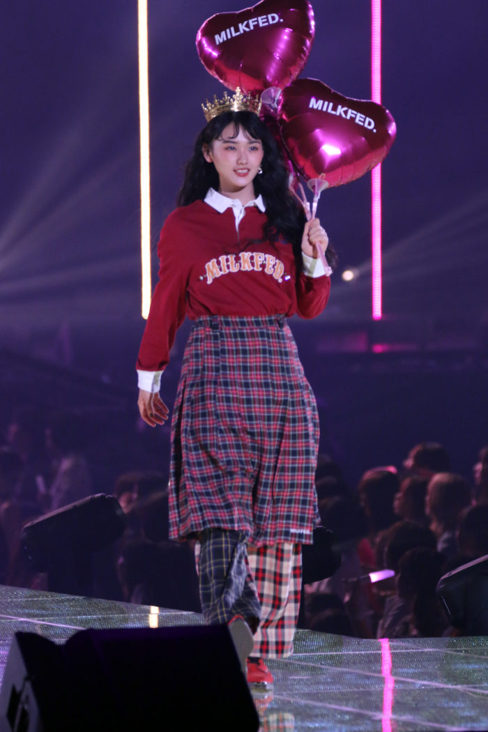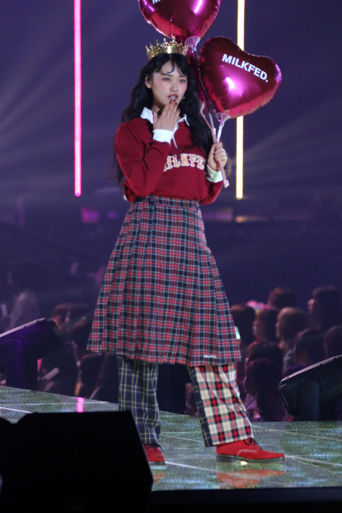 手には赤いハートの風船、髪はウェーブを効かせたスタイルに仕上げ、頭には輝く王冠。ポップでファンタジックなアイテムを軽やかに取り入れ、ステージに“ハッピーオーラ”を振りまく姿は、まるで物語の中から飛び出してきたキャラクターのようだった。