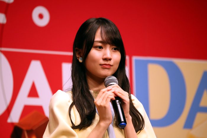 CM発表会初参加となった賀喜は「昨年は出ているメンバーを見てかわいいなって、同じメンバーながら見ていたので、今回こうして出演できたこともすごくうれしいですし、私自身DARSが大好きなので、こうして直接というか、言葉で皆さんにDARSの魅力をたくさん伝えられたんじゃないかな」と喜びを語った。