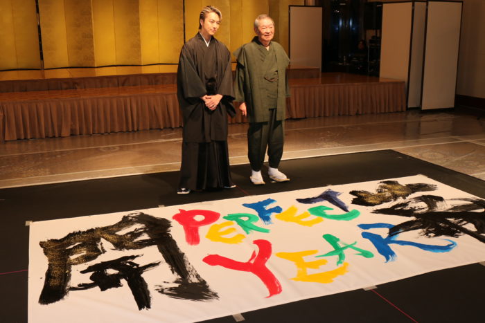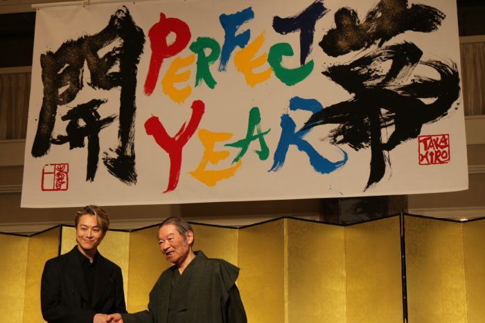 会見に先立ち行われたのは、EXILE・TAKAHIROと書家・吉川壽一氏による書き初めパフォーマンス。巨大な紙にしたためられた文字は「PERFECT YEAR 開幕」。一筆一筆に力を込めた迫力ある書が完成すると、会場からは大きな拍手が沸き起こった。TAKAHIROは「とても緊張感のある中での制作でしましたが、人生の宝物ができました。僕たちにとってのお守りになると思います」と感慨深く語った。