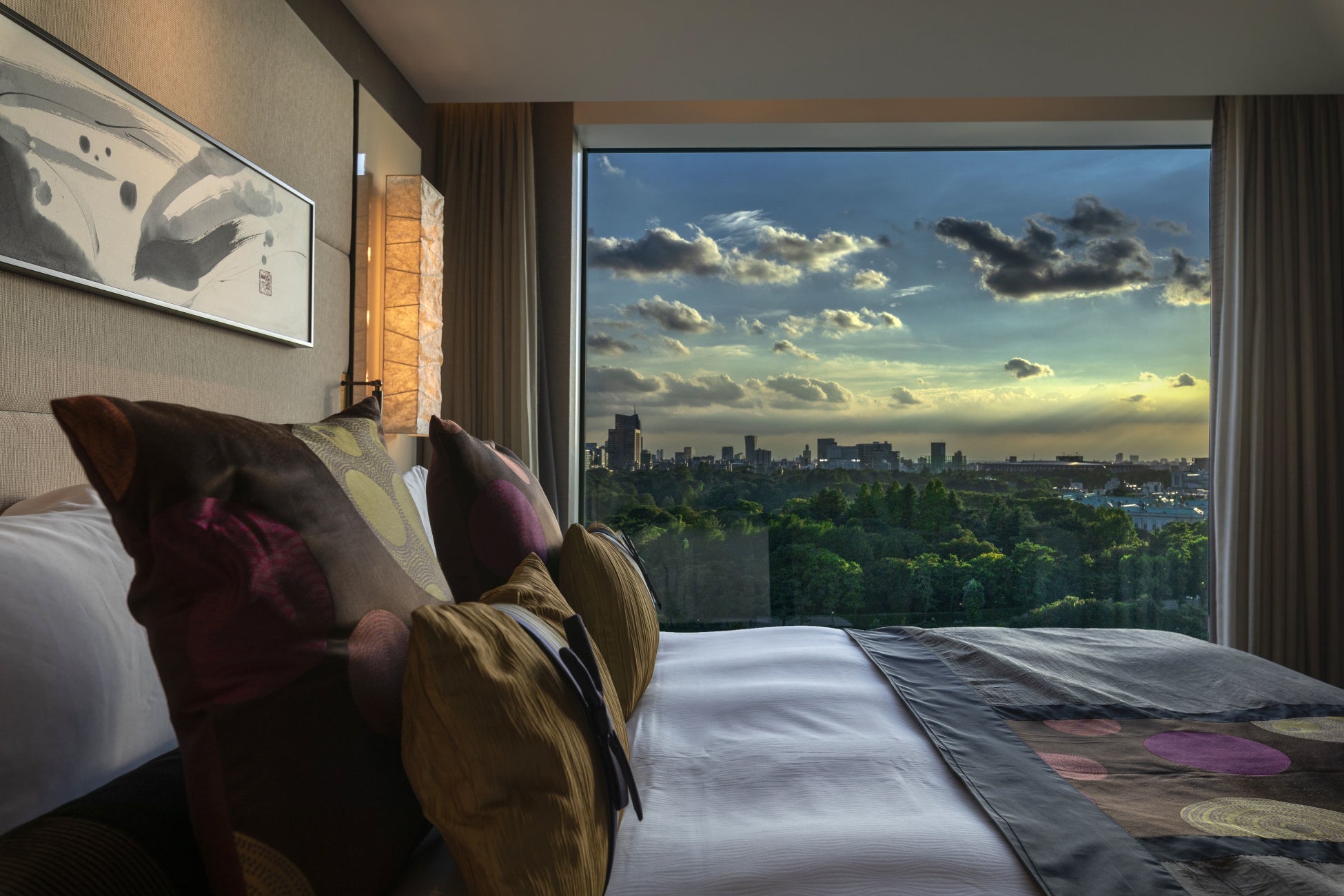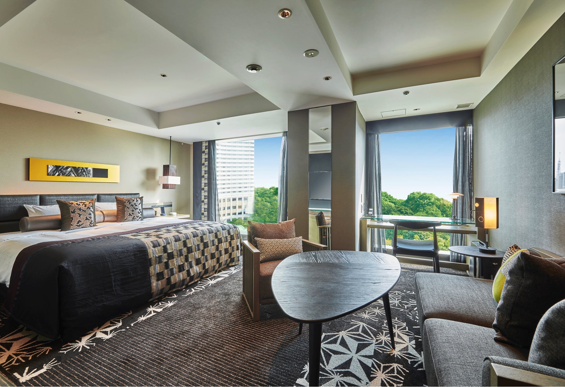 和モダンなインテリアデザインに、窓外に広がる日本庭園の眺望、シェフソムリエが厳撰した日本酒とおかきのサービスなど、まるで旅館のようなユニークな体験が叶うお部屋で、身も心も温まる癒しのご滞在をお愉しみください。