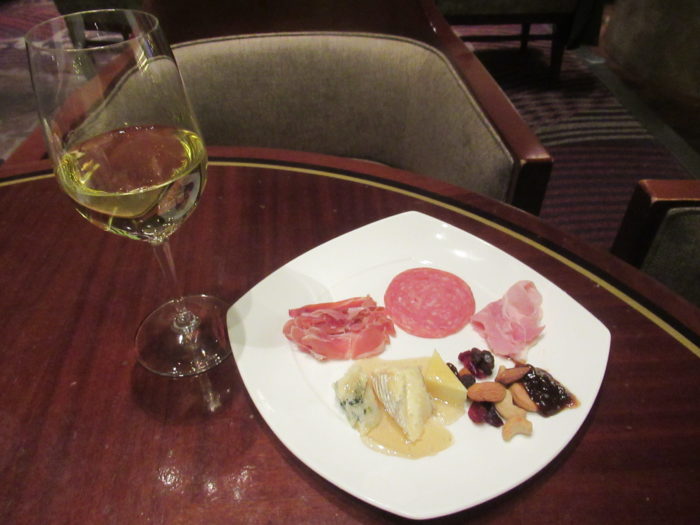 ワイン好きには欠かせない充実のラインナップ。サラミ、ロゼハム、セラーノハム、ブルーチーズなどのチーズ3種、ミックスナッツが揃い、つまむほどにワインが進む味わいです。相性の良い白ワインとして「トゥー ヴァインズ シャルドネ」を合わせれば、より一層豊かなペアリングが楽しめます。