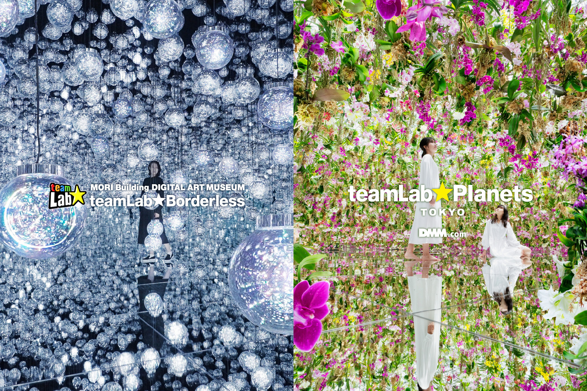 「森ビル デジタルアート ミュージアム:エプソン チームラボボーダレス」東京 麻布台ヒルズ、「チームラボプラネッツ TOKYO DMM.com」東京 豊洲 ©︎ チームラボ