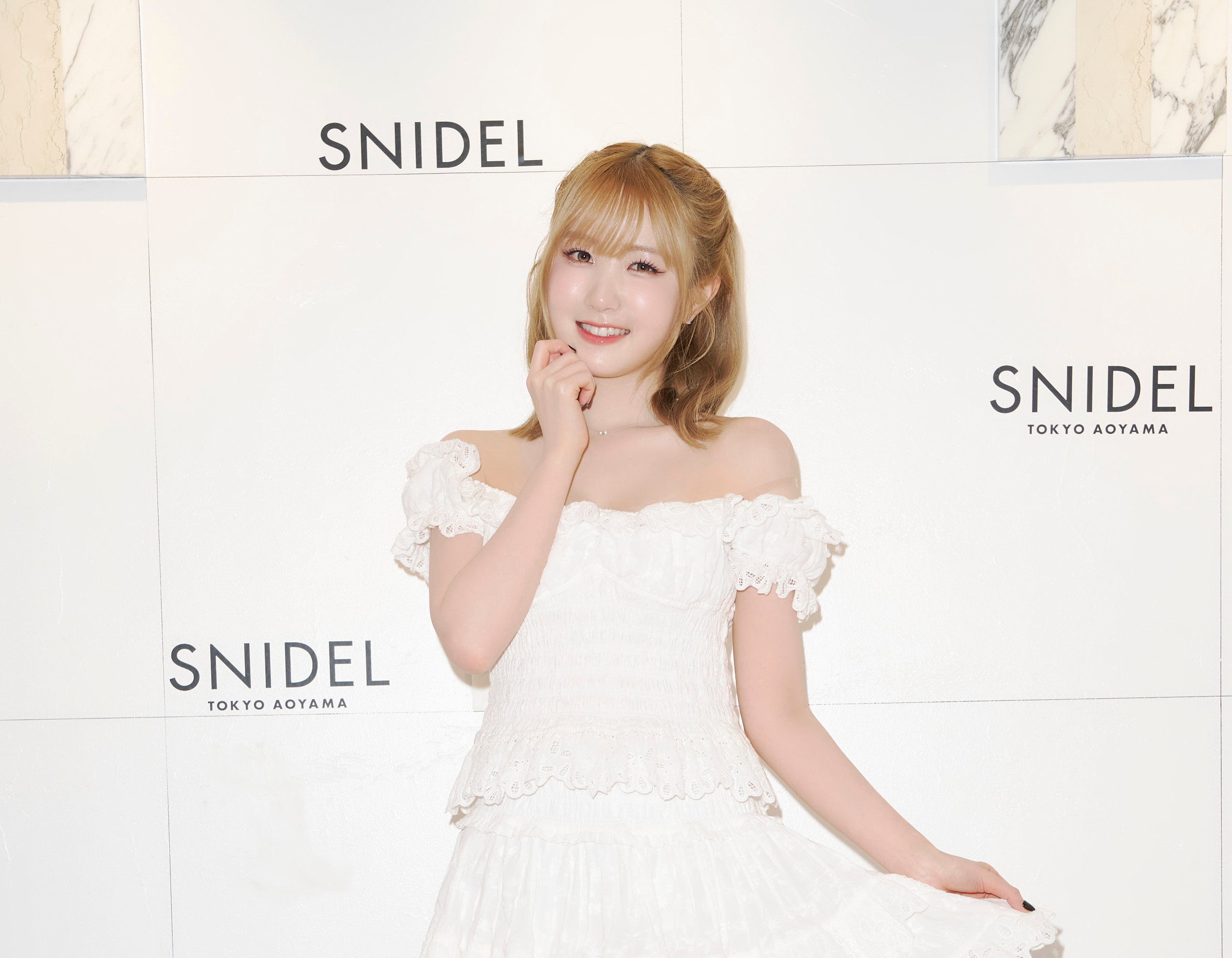SAY MY NAMEの本田仁美さんは、SNIDEL初の路面店について「すごく楽しみにして来ました。青山店限定のグッズや期間限定のカフェもあってとてもワクワクした空間でした」とコメント。この日着用した洋服について「レースのトップスとスカート、すごくお気に入りです」と紹介。オフショルダーにしたりフリルを際立たせたりとアレンジがきくセットアップが気に入ったよう。また、「最近春を感じた瞬間は?」の質問に、本田さんは「韓国は日本よりちょっと寒いんですけど、韓国でも桜が満開で、ドライブ中に窓を開けると桜のはなびらが舞いこんできて、“あっ!春を感じるな”と思って心があたたかくなりました」と語っていました。また、食器集めが趣味の本田さん。最近の出会いについて聞かれると「韓国でお休みの日に、食器の専門的に行って素敵なお皿と出会いまして。いま愛用しています!」とうれしそうに話してくれました。